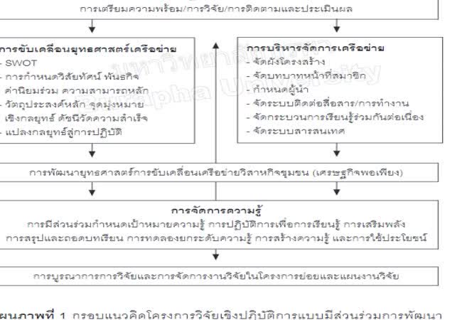 การวิจัยเชิงปฎิบัติการแบบมีส่วนร่วมการพัฒนายุทธศาสตร์การขับเคลื่อนเครือข่ายวิสาหกิจชุมชน จังหวัดนครราชสีมา เจ้าของผลงาน : สุวรรณ เตชะธีระปรีดา คำสำคัญ : วิสาหกิจชุมชน, เครือข่ายวิสาหกิจชุมชน, การพัฒนากลยุทธ์, การขับเคลื่อนเครือข่ายวิสาหกิจชุมชน วันที่เผยแพร่ : 5 เมษายน 2562
