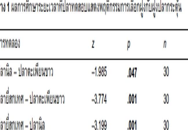 การเลือกฝูงในปลาตะเพียนขาว (Barbonymus gonionotus) เจ้าของผลงาน : จันทิมา ปิยะพงษ์ คำสำคัญ : การเลือกฝูง, ปลาตะเพียนขาว, พฤติกรรม วันที่เผยแพร่ : 9 เมษายน 2562