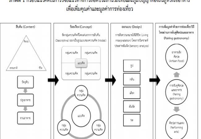 แนวทางการสอดประสานวิถีไทยและภูมิปัญญาท้องถิ่นสู่ห่วงโซ่อาหารเพื่อเพิ่มคุณค่าและมูลค่าการท่องเที่ยว เจ้าของผลงาน : ณัฎฐกานต์ พฤกษ์สรนันทน์ คำสำคัญ : การท่องเที่ยวโดยชุมชน, การท่องเที่ยวเชิงสร้างสรรค์, การท่องเที่ยวเชิงศิลปะอาหาร, สันถวไมตรีแห่งอาหาร, การพัฒนาการท่องเที่ยวอย่างยั่งยืน วันที่เผยแพร่ : 24 เมษายน 2562