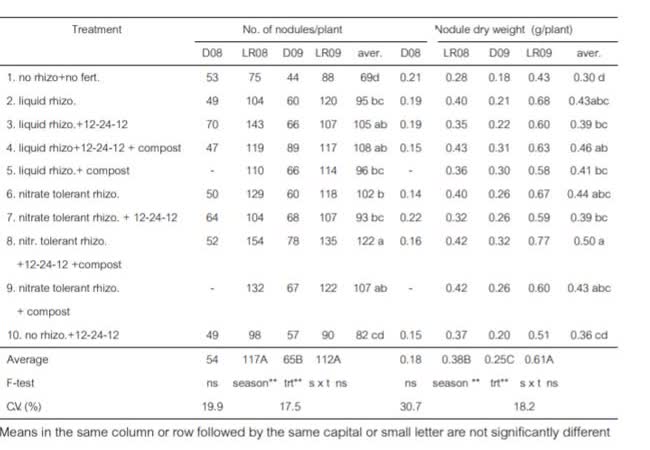 การใช้เชื้อไรโซเบียมร่วมกับปุ๋ยเคมีและปุ๋ยอินทรีย์ เพื่อเพิ่มผลผลิตและโปรตีนในถั่วเหลือง เจ้าของผลงาน : พรพรรณ สุทธิแย้ม คำสำคัญ : ถั่วเหลือง, เชื้อไรโซเบียมทนไนเตรท, ปุ๋ยหมัก, ปุ๋ยเคมี, เปอร์เซ็นต์โปรตีน วันที่เผยแพร่ : 24 เมษายน 2562