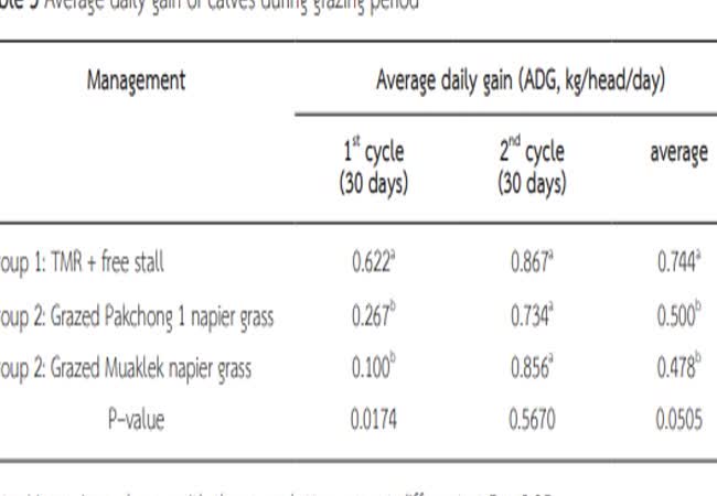 อัตราการเจริญเติบโตของลูกโคนมเพศผู้ที่เลี้ยงแบบปล่อยแทะเล็มแปลงหญ้า และแบบให้อาหารสูตรรวมทีเอ็มอาร์ เจ้าของผลงาน : กรรณิกา อัมพุช คำสำคัญ : อัตราการเจริญเติบโต, ลูกโคนมเพศผู้, แปลงหญ้าเนเปียร์, อาหารสูตรรวมทีเอ็มอาร์ วันที่เผยแพร่ : 13 พฤษภาคม 2562