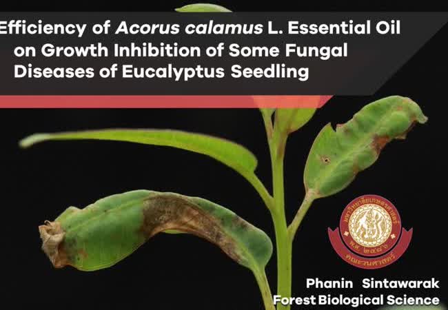 ฤทธิ์ในการต้านเชื้อราของน้ำมันหอมระเหยที่สกัดจากเหง้าว่านน้ำต่อการยับยั้งการเจริญของเชื้อราสาเหตุโรคบางชนิดในต้นกล้ายูคาลิปตัส เจ้าของผลงาน : นายพนิน สินธวารักษ์ คำสำคัญ : ยูคาลิปตัส, ว่านน้ำ, ฤทธิ์การต้านเชื้อรา, น้ำมันหอมระเหย, โรคและศัตรูพืช วันที่เผยแพร่ : 16 พฤษภาคม 2562