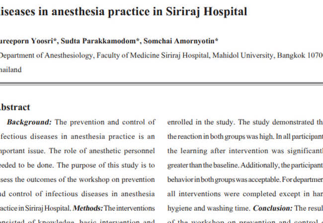 anesthesia practice, workshop, prevention, control, infectious disease