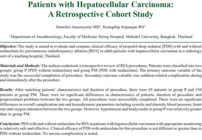 Deep Sedation, Propofol, Percutaneous Radiofrequency ablation, Hepatocellular Carcinoma, Elderly, Sick, Developing Country
