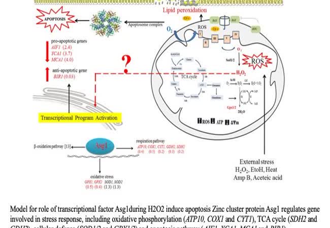 ROLES OF TRANSCRITIONAL REGULATOR Asg1 FOR REGULATION OF GENE EXPRESSION AND PROGRAMMED CELL DEATH IN THE YEAST SACCHAROMYCES CEREVISIAE เจ้าของผลงาน : Mr. Napachai Rodboon คำสำคัญ : Yeast, Apoptosis, Asg1, Oxidative stress, Saccharomyces cerevisiae, Transcription factor วันที่เผยแพร่ : 27 พฤษภาคม 2562