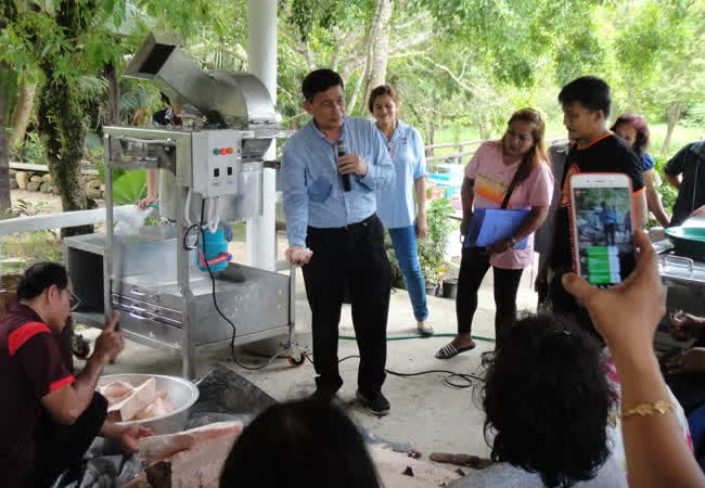 การถ่ายทอดองค์ความรู้และเทคโนโลยีเพื่อการผลิตและแปรรูปแป้งสาคู ในจังหวัดนครศรีธรรมราช ตรัง และพัทลุง เจ้าของผลงาน : พนม อินทฤทธิ์ คำสำคัญ : สาคู, การผลิตแป้งสาคู, การแปรรูปแป้งสาคู, เครื่องผลิตแป้งสาคู, เครื่องผลิตเม็ดแป้งสาคู วันที่เผยแพร่ : 4 มิถุนายน 2562