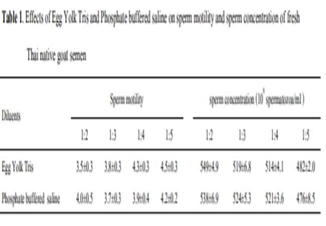 คุณภาพน้ำเชื้อ, การเจือจางน้ำเชื้อ, น้ำเชื้อสด, แพะพื้นเมืองไทย
