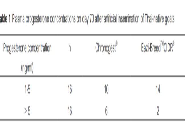 โปรเจสเทอโรนสังเคราะห์, อัตราการผสมติด, กำหนดเวลาการผสมเทียม, แพะพื้นเมืองไทย