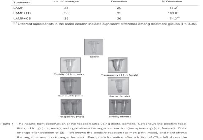ปฏิกิริยา, LAMP, การคัดเพศตัวอ่อน, โค