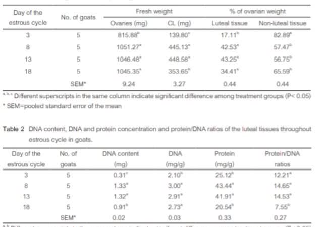 คอร์ปัสลูเทียม, การเจริญเติบโต, โปรตีน, ดีเอ็นเอ, ดัชนีชี้วัดการเจริญเติบโต