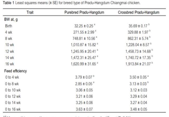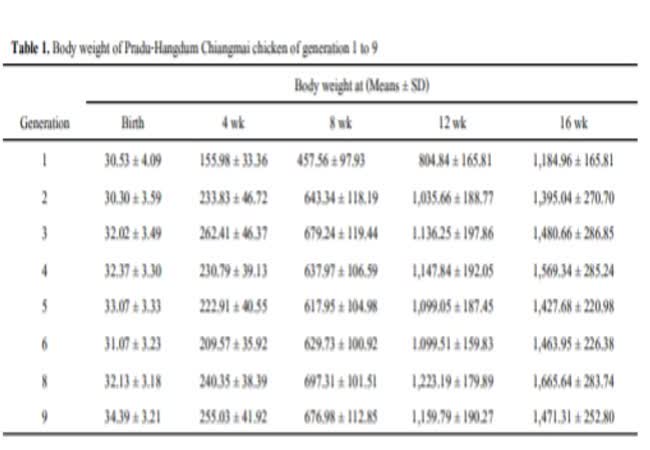 น้ำหนักตัวและค่าอัตราพันธุกรรมของไก่พื้นเมืองไทยประดู่หางดำเชียงใหม่ เมื่อคัดเลือกถึงชั่วอายุที่ 9 เจ้าของผลงาน : อำนวย เลี้ยวธารากุล คำสำคัญ : ไก่พื้นเมือง, ไก่ประดู่หางดำเชียงใหม่, น้ำหนักตัว, อัตราพันธุกรรม วันที่เผยแพร่ : 4 กรกฎาคม 2562