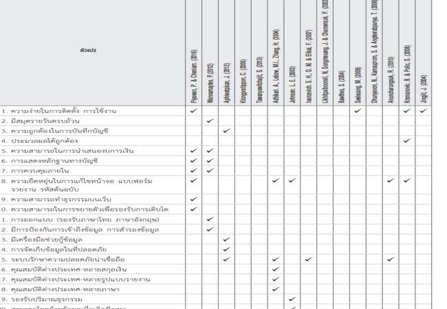 องค์ประกอบของปัจจัยที่มีอิทธิพลต่อการตัดสินใจเลือกใช้โปรแกรมสำเร็จรูปทางการบัญชีของผู้บริหารทางบัญชีที่ทำงานในบริษัทจดทะเบียนในตลาดหลักทรัพย์แห่งประเทศไทย เจ้าของผลงาน : ณัฐพัชร์ อภิวัฒน์ไพศาล คำสำคัญ : โปรแกรมสำเร็จรูปทางการบัญชี, ผู้บริหารทางบัญชี, ตลาดหลักทรัพย์, บัญชี วันที่เผยแพร่ : 8 ตุลาคม 2562