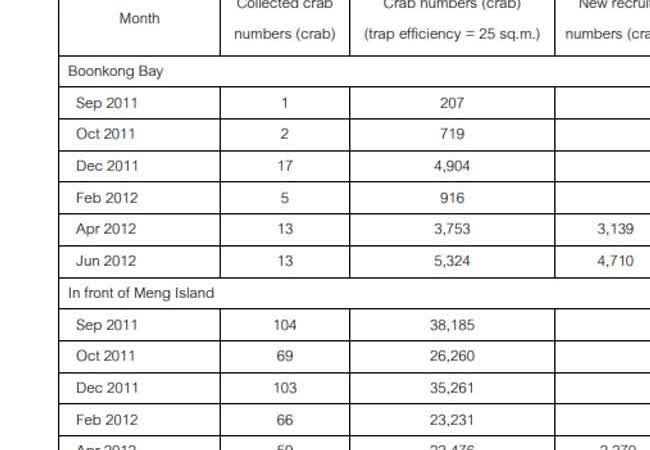 การประเมินทรัพยากรปูม้า (Portunus pelagicus Linnaeus, 1758) จากโครงการเพิ่มพันธุ์ด้วยระบบภูมิสารสนเทศ เจ้าของผลงาน : ธงชัย นิติรัฐสุวรรณ คำสำคัญ : ปูม้า, การประเมินทรัพยากรปูม้า, โครงการเพิ่มพันธุ์ปูม้า, ระบบภูมิสารสนเทศ, จังหวัดตรัง วันที่เผยแพร่ : 18 ตุลาคม 2562