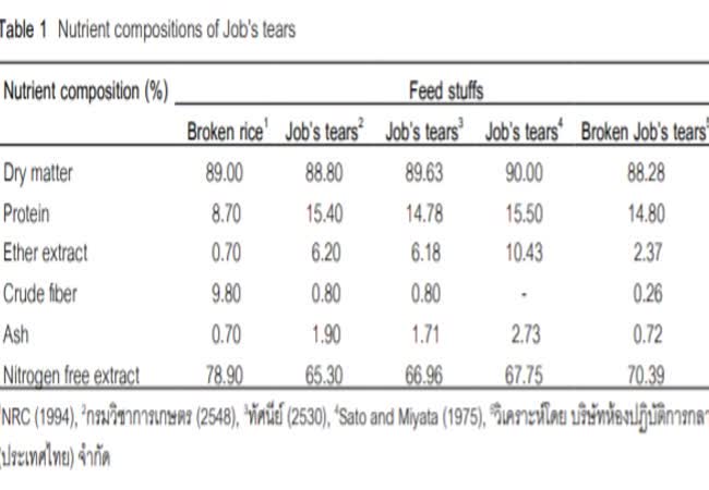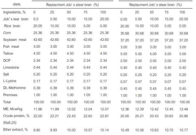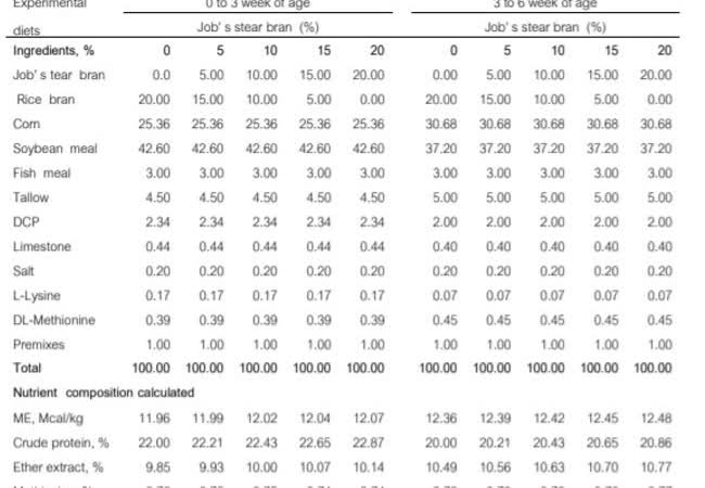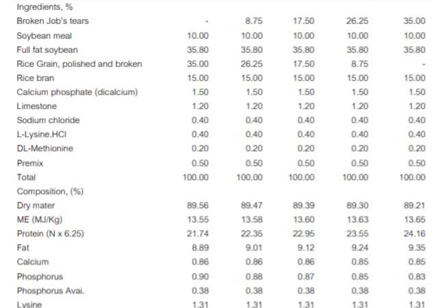 รำเดือย, รำข้าว, โภชนะ, สมรรถนะการเจริญเติบโต