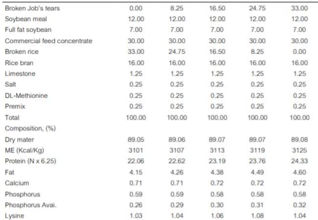 รำเดือย, โภชนะ, สมรรถนะการเจริญเติบโต, ไก่เนื้อ