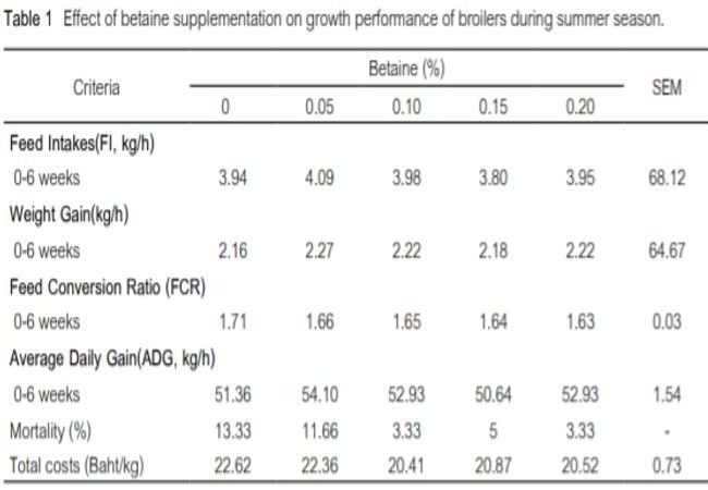 ผลการเสริมบีเทนในอาหารต่อสมรรถนะการผลิต คุณภาพซากและคุณภาพเนื้อของไก่เนื้อ เจ้าของผลงาน : กันยา พลเสน คำสำคัญ : บีเทน, ไก่เนื้อ, สมรรถนะการผลิต, คุณภาพซาก, คุณภาพเนื้อ วันที่เผยแพร่ : 27 พฤศจิกายน 2562