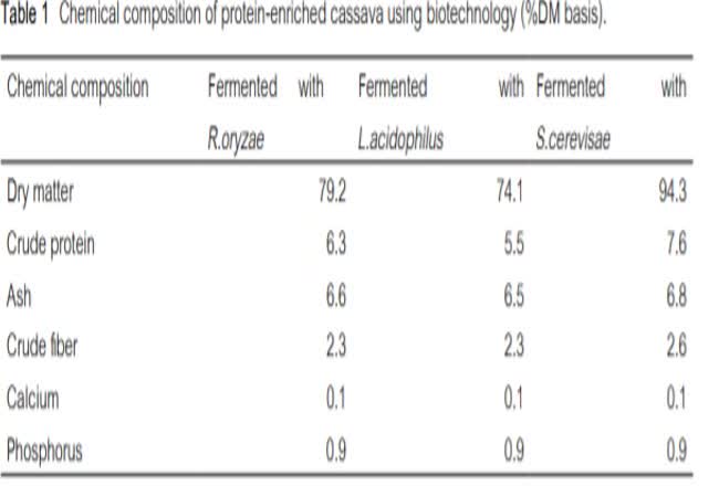- มันสำปะหลัง, นกกระทาญี่ปุ่น, R. oryzae, L. acidophilus, S. cerevisiae