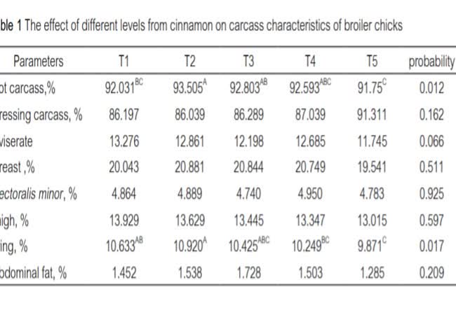 - อบเชย, คุณภาพเนื้อ, ไก่กระทง