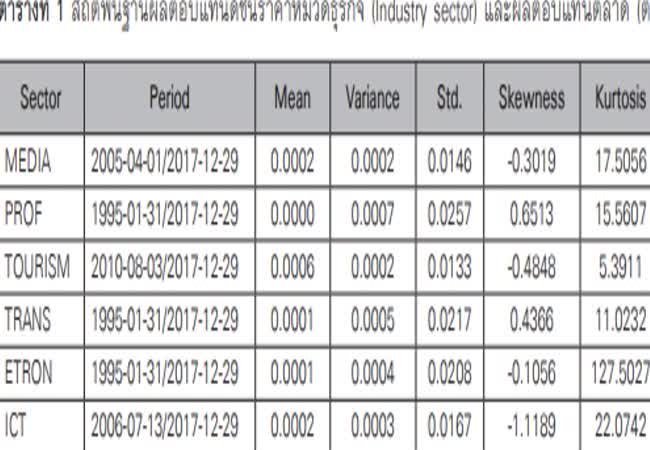 ความเสี่ยงของดัชนีหมวดธุรกิจในช่วงที่มีค่าผลตอบแทนเบี่ยงเบนสูงในตลาดหลักทรัพย์แห่งประเทศไทย เจ้าของผลงาน : เทพชู ศรีโพธิ์ คำสำคัญ : ค่าวิกฤต, ทฤษฎีค่าเอ็กซ์ทรีม, ความเสี่ยงส่วนหาง วันที่เผยแพร่ : 4 ธันวาคม 2562