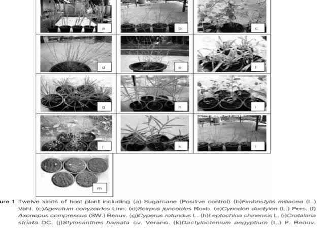 การทดสอบพืชอาหารของเพลี้ยจักจั่น Matsumuratettix hiroglyphicus (Matsumura) พาหะนำโรคใบขาวอ้อย เจ้าของผลงาน : สุกฤตา อนุตระกูลชัย คำสำคัญ : โรคใบขาวอ้อย, เพลี้ยจักจั่น Matsumuratettix hiroglyphicus (Matsumura), วัชพืช วันที่เผยแพร่ : 28 มกราคม 2563