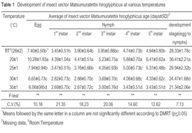 ผลของอุณหภูมิต่อแมลงพาหะ Matsumuratettix hiroglyphicus นำโรคใบขาวอ้อย เจ้าของผลงาน : ชนาณัฐ แก้วมณี คำสำคัญ : แมลงพาหะ, เชื้อไพโตพลาสมา, อ้อย, อุณหภูมิ วันที่เผยแพร่ : 28 มกราคม 2563
