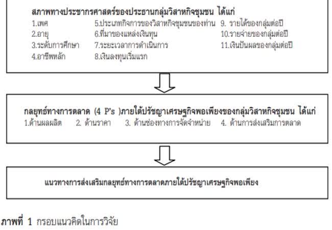 แนวทางการส่งเสริมกลยุทธ์ทางการตลาด ภายใต้ปรัชญาเศรษฐกิจพอเพียง ของกลุ่มวิสาหกิจชุมชน อำเภอซำสูง จังหวัดขอนแก่น เจ้าของผลงาน : ฌัชฌานันท์ นิติวัฒนะ คำสำคัญ : กลยุทธ์ทางการตลาด, ปรัชญาเศรษฐกิจพอเพียง, กลุ่มวิสาหกิจชุมชน วันที่เผยแพร่ : 7 กุมภาพันธ์ 2563