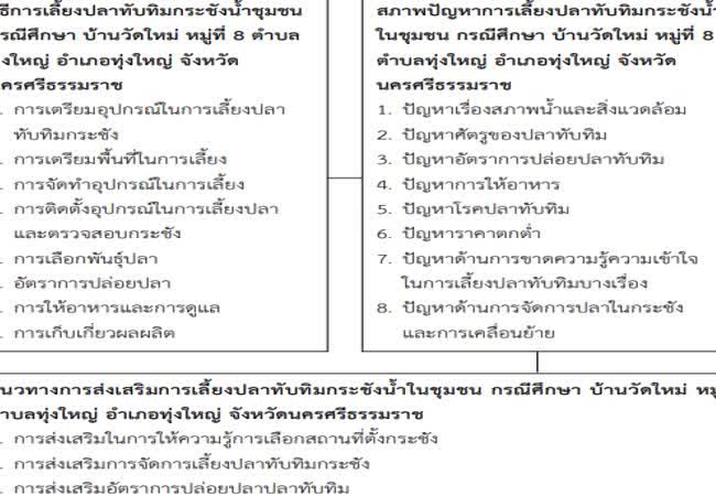 ปลาชังน้ำ : สถานการณ์การเลี้ยงปลาทับทิมกระชังน้ำในชุมชน กรณีศึกษา บ้านวัดใหม่ หมู่ที่ 8 ตำบลทุ่งใหญ่ อำเภอทุ่งใหญ่ จังหวัดนครศรีธรรมราช เจ้าของผลงาน : นฤเบศวร์ สถิต คำสำคัญ : ปลาชังน้ำ, ปลาทับทิม, สถานการณ์การเลี้ยงปลาทับทิม วันที่เผยแพร่ : 13 พฤษภาคม 2563