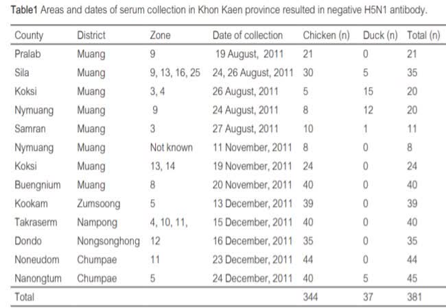 การเฝ้าระวังโรคไข้หวัดนกสายพันธุ์ H5N1 ในสัตว์ปีก ใน 3 จังหวัดภาคตะวันออกเฉียงเหนือ ปี พ.ศ. 2554-2555 เจ้าของผลงาน : กชกร ดิเรกศิลป์ คำสำคัญ : ไข้หวัดนก H5N1, ไวรัสไข้หวัดใหญ่ชนิดเอ, สัตว์ปีก วันที่เผยแพร่ : 18 พฤษภาคม 2563