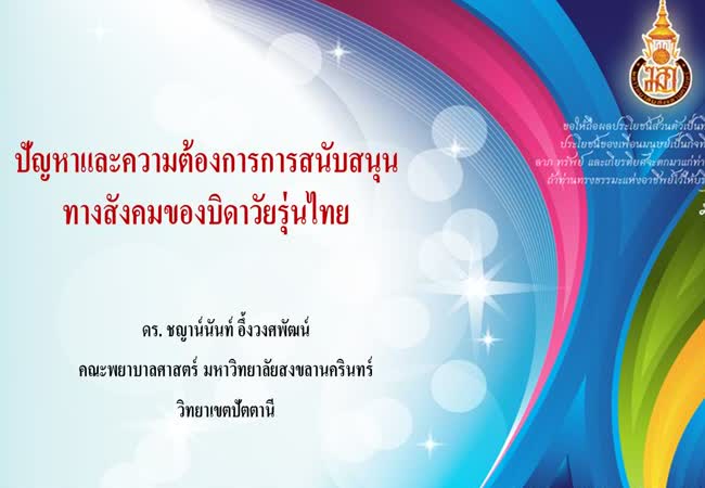 ปัญหาและความต้องการการสนับสนุนทางสังคมของบิดาวัยรุ่นไทย เจ้าของผลงาน : ดร. ชญาน์นันท์ อึ้งวงศพัฒน์ คำสำคัญ : บิดาวัยรุ่น, การสนับสนุนทางสังคม, ปัญหา, ไทย วันที่เผยแพร่ : 21 พฤษภาคม 2563