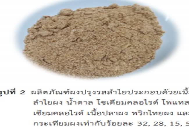 การพัฒนาผลิตภัณฑ์ผงปรุงรสจากลำไย เจ้าของผลงาน : นรินทร์ เจริญพันธ์ คำสำคัญ : ลำไย, โซเดียมคลอไรด์, โพแทสเซียมคลอไรด์, ผงปรุงรส วันที่เผยแพร่ : 26 พฤษภาคม 2563