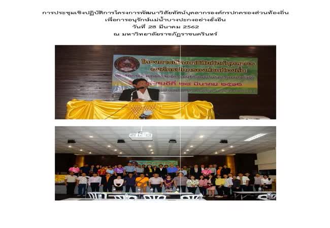 THE DEVELOPMENT OF LOCAL AUTHORITY PERSONNEL FOR VISIONARY FORMING AND STRATEGIC PLANNING ON BANGPAKONG RIVER SUSTAINABLE CONSERVATION เจ้าของผลงาน : PHUSSADEE PHUMMARA คำสำคัญ : DEVELOPMENT OF LOCAL AUTHORITY PERSONNEL, VISIONARY FORMING, STRATEGIC PLANNING, BANGPAKONG RIVER, SUSTAINABLE CONSERVATION วันที่เผยแพร่ : 4 พฤศจิกายน 2563