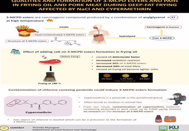 Qualities and Formation of 3-MCPD Esters and PAHs in Frying Oil and Pork Meat During Deep-Fat Frying Affected by NaCl and Cypermethrin เจ้าของผลงาน : ฐานิดา เมืองน้อย คำสำคัญ : Chlorine containing compound, Cypermethrin, Deep-fat frying, NaCl, Oil qualities, PAHs, Pork meat, 3-MCPD esters วันที่เผยแพร่ : 7 มีนาคม 2565