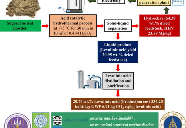 - กรดเลวูลินิค, ใบอ้อย, สารเคมีตัวกลาง, การประเมินวัฏจักรชีวิต, โมเดลเศรษฐกิจใหม่, Levulinic acid, Sugarcane leaf, Intermediate chemicals, Life cycle assessment, BCG model