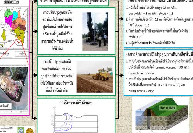 การพัฒนาการออกแบบโครงสร้างดินที่มีประสิทธิภาพเพื่อป้องกันน้ำทะเลรุกล้ำบริเวณพื้นที่ชายฝั่งทะเล เจ้าของผลงาน : สยาม ยิ้มศิริ คำสำคัญ : การรุกล้ำของน้ำทะเล, พนังกั้นน้ำเหนือผิวดิน, กำแพงทึบน้ำใต้ผิวดิน, การปรับปรุงคุณสมบัติของดิน, ปูนซีเมนต์, การทดสอบในห้องปฏิบัติการ, การวิเคราะห์เชิงตัวเลข วันที่เผยแพร่ : 20 พฤษภาคม 2565