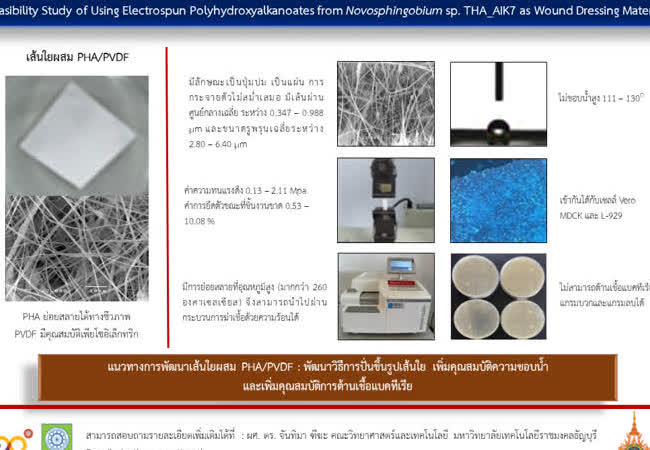 การศึกษาความเป็นไปได้ในการใช้เส้นใยอิเล็กโตรสปันพอลิไฮดรอกซีอัลคาโนเอทจาก Novosphingobium sp. THA_AIK7เป็นวัสดุปิดแผล เจ้าของผลงาน : จันทิมา ฑีฆะ อัษฎาวุธ อารีสิริสุข และมาโนช โพธิ์สูง คำสำคัญ : PHA/PVDF, Electrospinning, Wound Dressing Material วันที่เผยแพร่ : 6 กรกฎาคม 2565