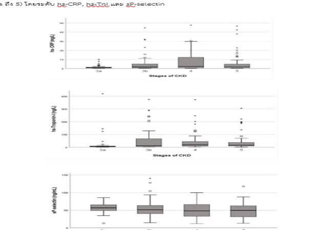ระดับ C-reactive Protein, Soluble P-selectin และ Cardiac Troponin I ในผู้ป่วยโรคไตเรื้อรังที่ไม่ได้รับการบำ บัดทดแทนไต เจ้าของผลงาน : ธัชพล นันทขันธ์ คำสำคัญ : Chronic kidney disease, Acute coronary syndrome, C-reactive protein, Troponin I, Soluble P-selectin วันที่เผยแพร่ : 6 กรกฎาคม 2565