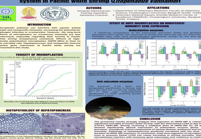 ผลกระทบของไมโครพลาสติกต่อการแสดงออกของยีนที่เกี่ยวข้องกับระบบภูมิคุ้มกันแบบไม่จำเพาะในกุ้งขาวแวนนาไม (Litopenaeus vannmei)) เจ้าของผลงาน : ทรงศักดิ์ เนี๋ยมเจริญ คำสำคัญ : High-density polyethylene, Microplastics, Nonspecific immune system, Gene expression, Histopathology, Pacific white shrimp วันที่เผยแพร่ : 21 ธันวาคม 2565
