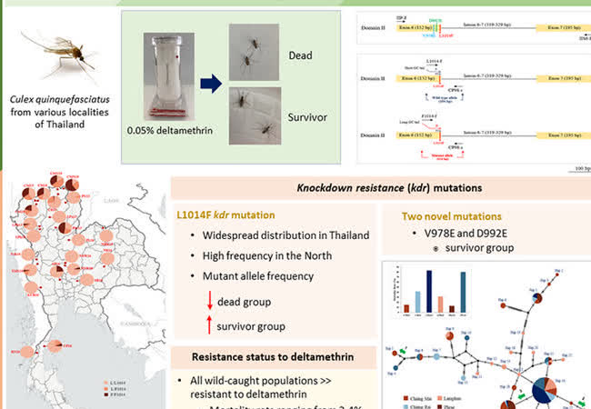 กลไกการต้านทานเดลต้าเมทรินในประชากรยุงรำคาญ Culex quinquefasciatus ในประเทศไทย เจ้าของผลงาน : เสาวนีย์ ชำนาญยา คำสำคัญ : Culex quinquefasciatus, Filariasis, Pyrethroid resistance, Voltage-gated sodium channel, Kdr mutation, Resistant haplotype network วันที่เผยแพร่ : 12 พฤษภาคม 2566