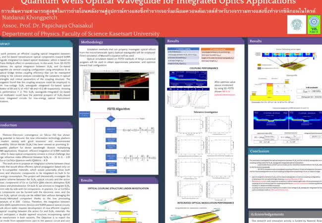 การเพิ่มความสามารถสูงสุดในการถ่ายโอนพลังงานสู่อุปกรณ์ทางแสงซึ่งทำจากเจอร์เมเนียมควอนตัมเวลล์สำหรับวงจรรวมทางแสงซึ่งทำจากซิลิกอนไนไตรต์ เจ้าของผลงาน : ณัฐดนัย คงเพ็ชร์ คำสำคัญ : ซิลิกอน,ควอนตัมเวลล์,วงจรรวมทางแสง วันที่เผยแพร่ : 15 มิถุนายน 2566