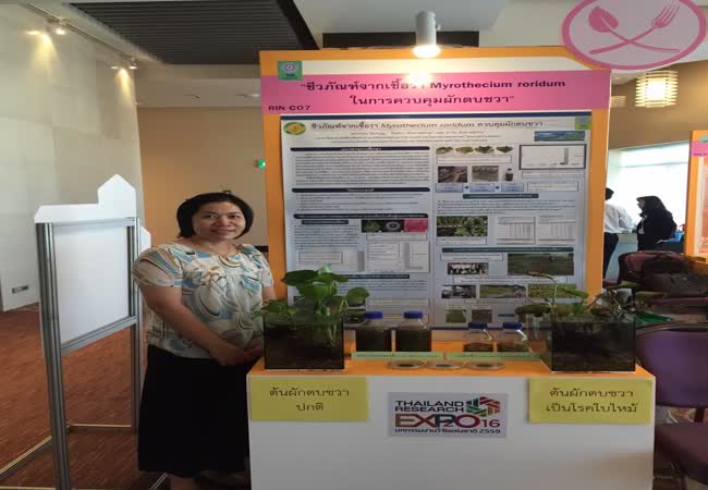 ชีวภัณฑ์จากเชื้อรา Myrothecium roridum ควบคุมผักตบชวา เจ้าของผลงาน : นางสาวอรวรรณ ปิยะบุญ คำสำคัญ : ผักตบชวา, Myrothecium roridum, ชีววิธี วันที่เผยแพร่ : 12 กันยายน 2559