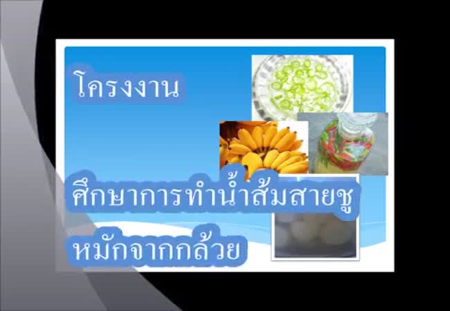 การทำน้ำส้มสายชูหมักจากกล้วย เจ้าของผลงาน : เจนจิรา ยาเก๋ คำสำคัญ : น้ำส้มสายชูหมัก, กล้วย, การหมัก วันที่เผยแพร่ : 7 ตุลาคม 2559