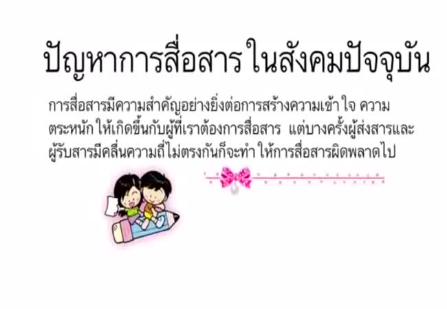 ปัญหาการสื่อสารในสังคมปัจจุบัน เจ้าของผลงาน : ชมพูนุท ขำสุวัฒน์ คำสำคัญ : ปัญหาการสื่อสาร, สังคมปัจจุบัน วันที่เผยแพร่ : 22 กุมภาพันธ์ 2560