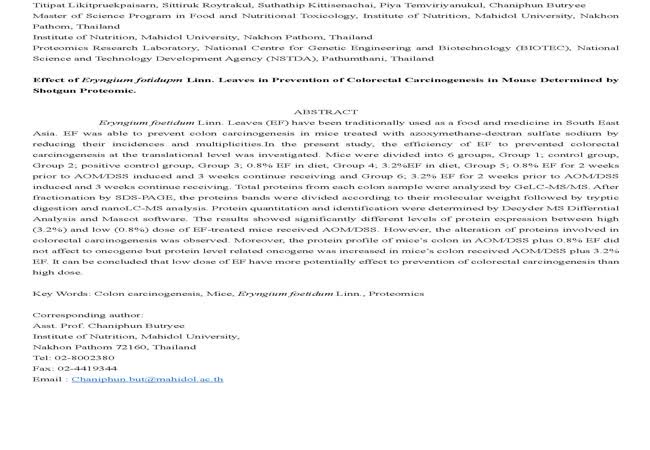 - Colon cancer, Eryngium foetidum Linn. leaves, Mouse, Proteomics
