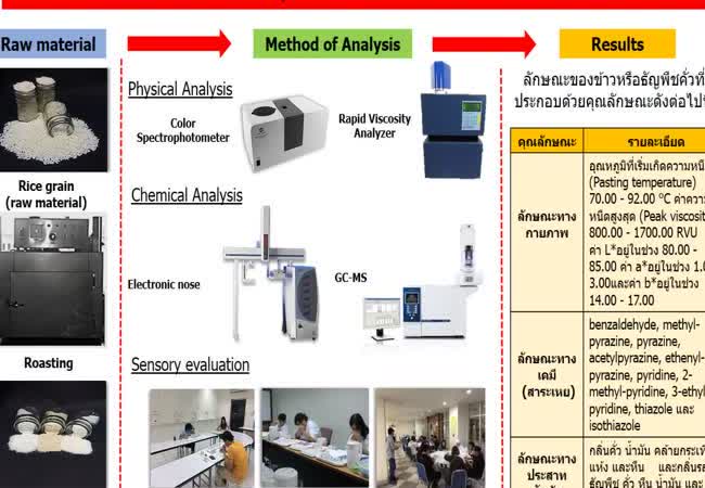 สมบัติทางกายภาพ เคมี และทางประสาทสัมผัสของข้าวคั่ว เจ้าของผลงาน : ชนกันต์ ศรีกงพาน คำสำคัญ : ข้าว, คั่ว, กลิ่น วันที่เผยแพร่ : 17 กรกฎาคม 2561