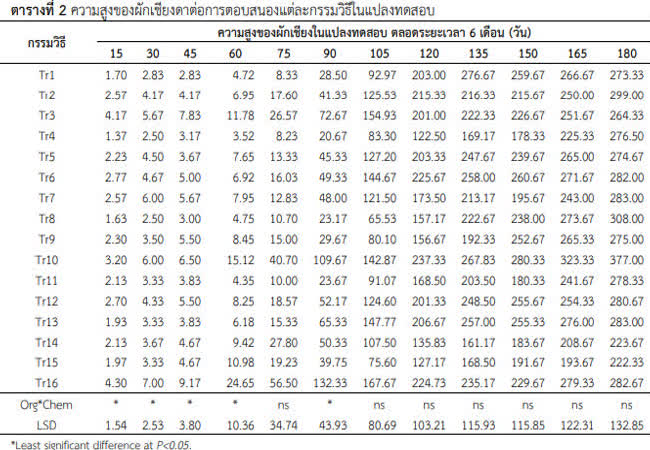 อัตราการใช้ปุ๋ยอินทรีย์และปุ๋ยเคมีที่มีผลต่อผลผลิตและปริมาณธาตุอาหารในผักเชียงดา เจ้าของผลงาน : พรรัตน์ ศิริคำ คำสำคัญ : อัตราส่วน, ปุ๋ยอินทรีย์, ปุ๋ยเคมี, ผักเชียงดา, การเจริญเติบโต, proportion, organic fertilizer, chemical fertilizer, Gymnema inodorum Decne., growth วันที่เผยแพร่ : 27 พฤศจิกายน 2561