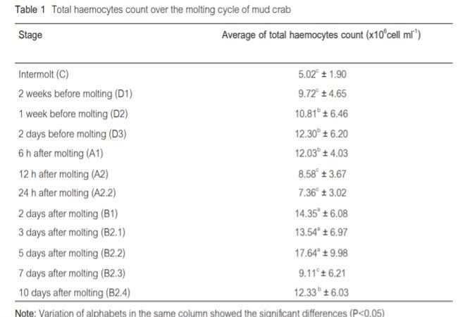เม็ดเลือด, ฟีนอลออกซิเดส, การลอกคราบ, ปูทะเล
