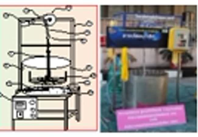 เครื่องย้อมสีเส้นไหมและฝ้ายแบบใช้หม้อต้มประหยัดพลังงาน เจ้าของผลงาน : วทัญญู บุตรศรี คำสำคัญ : หม้อต้มประหยัดพลังงาน, เครื่องย้อมสีเส้นไหม วันที่เผยแพร่ : 6 มีนาคม 2562