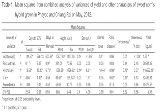 - Zea mays L. saccharata,, ผลผลิตสูง, ความหวาน, การทดสอบพันธุ์, การปรับปรุงพันธุ์