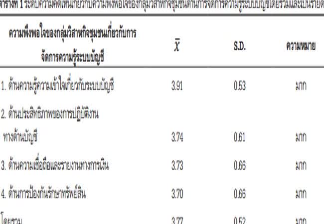 - การจัดการความรู้ระบบบัญชี, ประสิทธิภาพรายงานทางการเงิน, วิสาหกิจชุมชนทอผ้าไหม