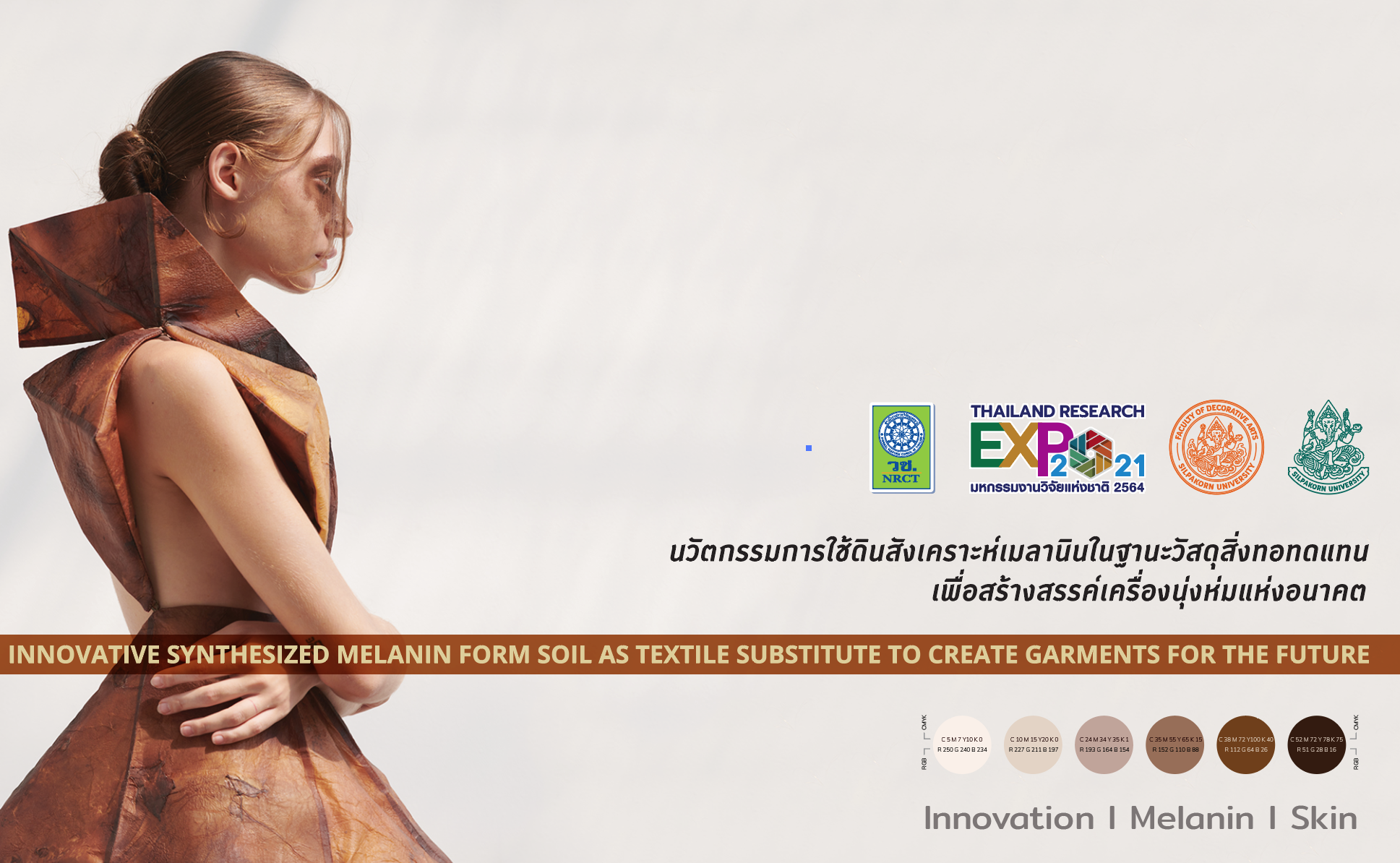 | ชื่อโครงการวิจัย/ชื่อเรื่อง ภาษาอังกฤษ | Innovative Synthesized Melanin from Soil as Textile Substitute to Create Garments for the Future |